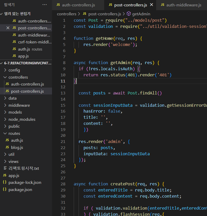| [간단한 블로그만들기 - 오류 모음3] res.locals.isAuth 를 통해, 템플릿 동적 관리하기가 안되요! (0) | 2022.09.14 |