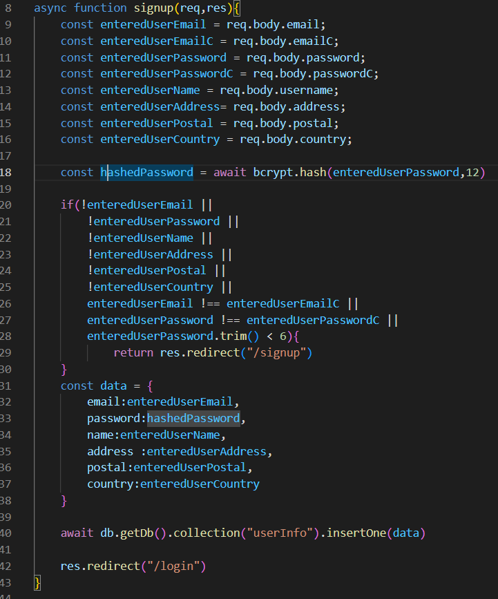 5. signup page에 db로 넘겨줄 값을 받아서, db로 값을 넘겨보자! 나중에 MODEL 폴더로, 또 리팩토링할거다. 으윽