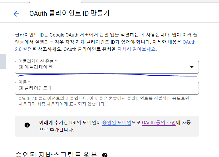 14. 동의 화면 구성이 끝났으니, 이제 진짜 클라이언트 ID 를 만들어본다.