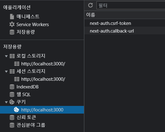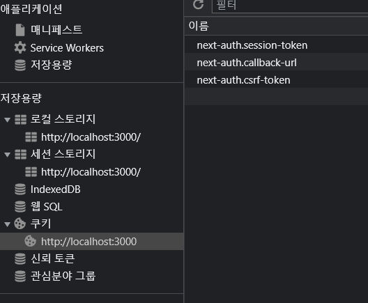 자동으로, 쿠키에 token이 저장되는 모습이다.