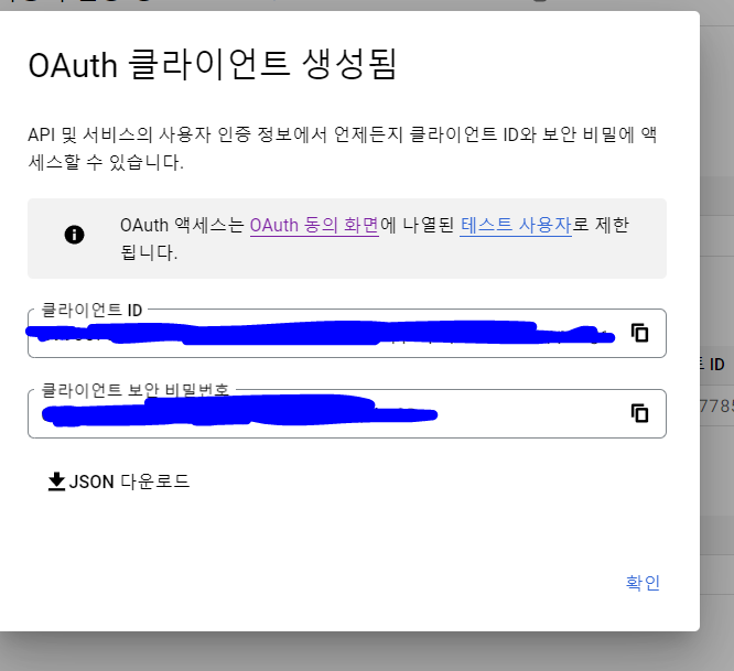 16. 짜잔. 적고나면 OAuth 를 사용할 수 있는 클라이언트의 ID 가 생성된다.