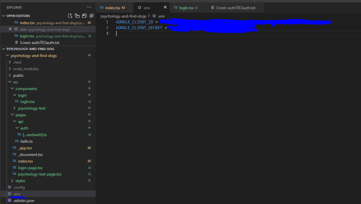 미리 생성했던 next-auth 의 provider 옵션에 적어두었던 환경변수에