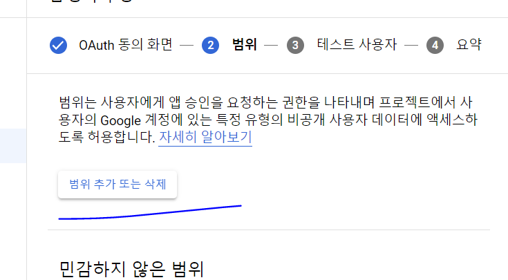6. 기본 세팅은 끝났다. 이제, Google 에 들어가서, OAuth 를 활성화시킨다.