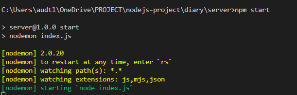 2. nodemon 을 실행시켜 서버를 켜보자.