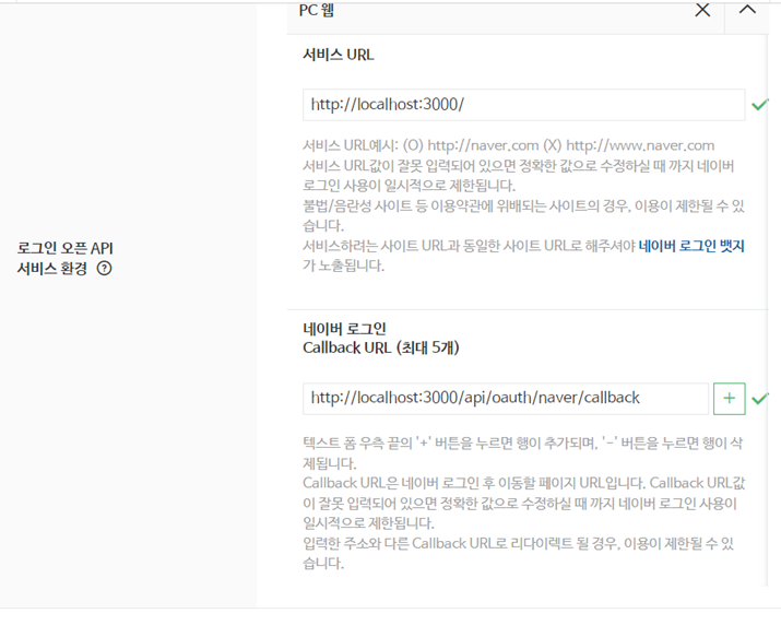 3. CallBack URL 은 내 서버를 넣어줍니다.