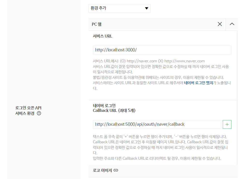 2. Callback URL 세팅