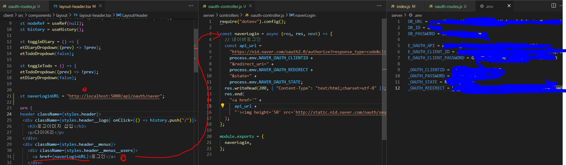 1. 클라이언트 ID 와 PASSWORD 를 서버의 .env 세팅에 저장한다.