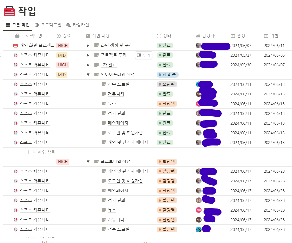 각 인원별 페이지를 할당하여 필요 페이지를 전부 작성하면 되었다.