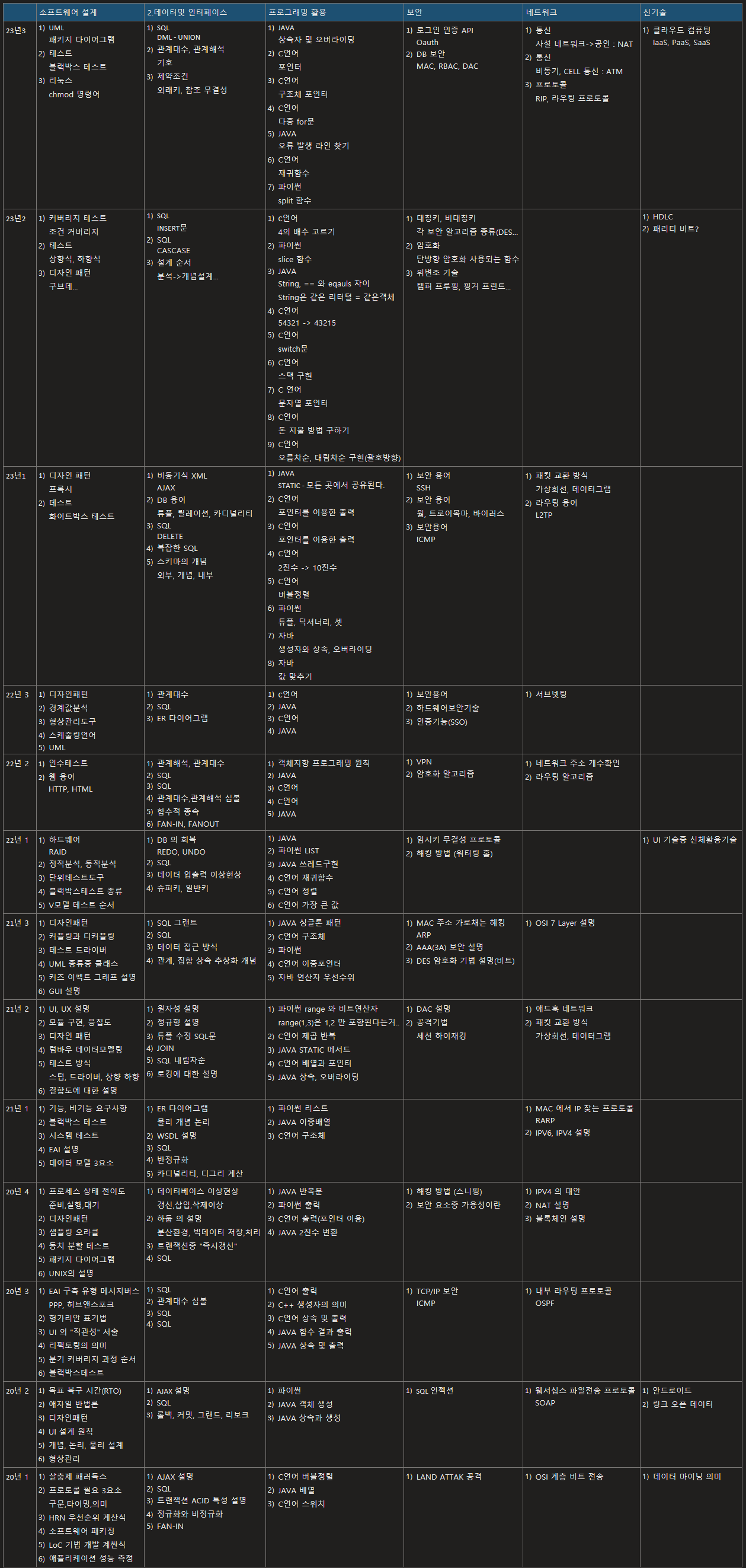 - 기출 4년치 정리 후 해당 정리 기준 공부