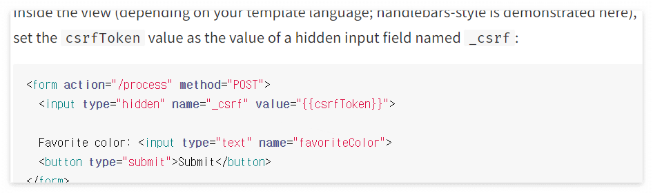2. csrf 패키지를 불러온 후, app.use( csrf() ) 를 통해, 작동시킨다.