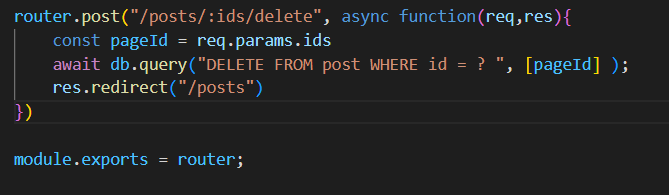 이게 웬걸 삭제버튼만 req.params.id를 읽을수가 없단다.