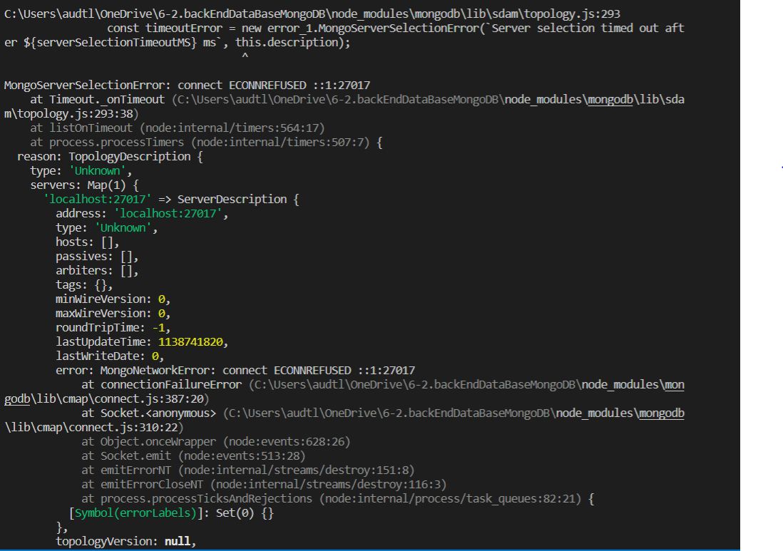강의에서는 [mongoDB의 데이터베이스 서버 연결 URL]을 localhost:27017 이라 했지만\